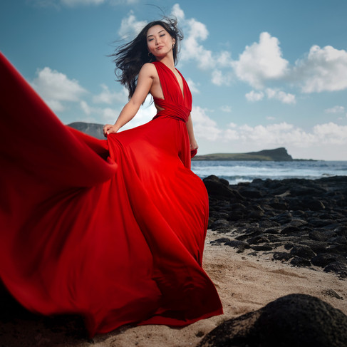 I recently did a flying dress photo session at Makapuu Beach Park with the lovely & beautiful Alia! I've now added a flying dress shoot photo package to my list of photo session offerings. I exclusively use m (flash) lights for my flying dress photography Hawaii sessions, which makes planning a bit more tricky to schedule & having a minimum of 2 assistants.